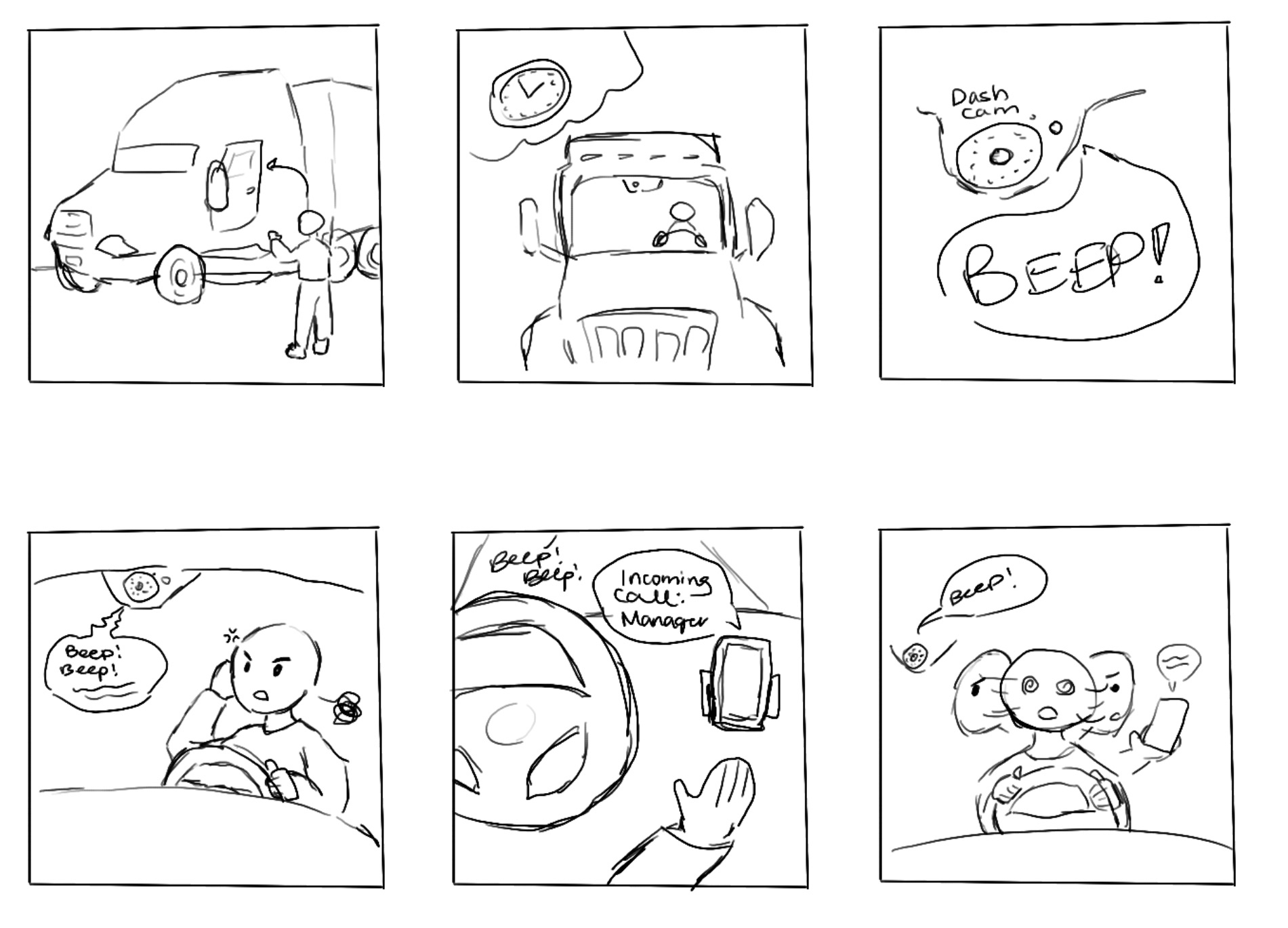Our focus was on the fleet drivers, who actively interact and receive audio feedback from the fleet management system device in-cabin.