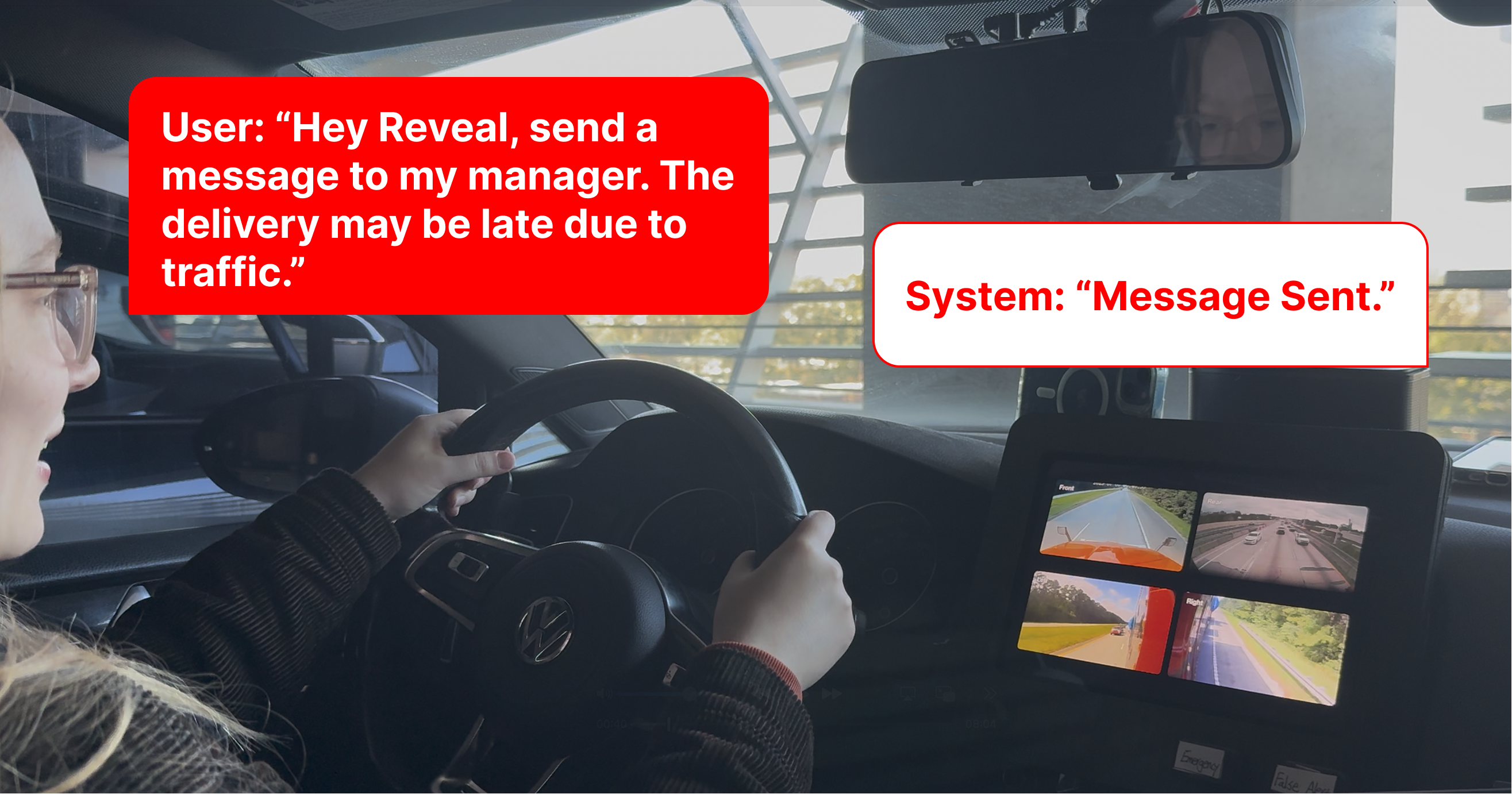 By saying "Hey Reveal", the driver can trigger a conversation with the voice assistant to complete different types of tasks.