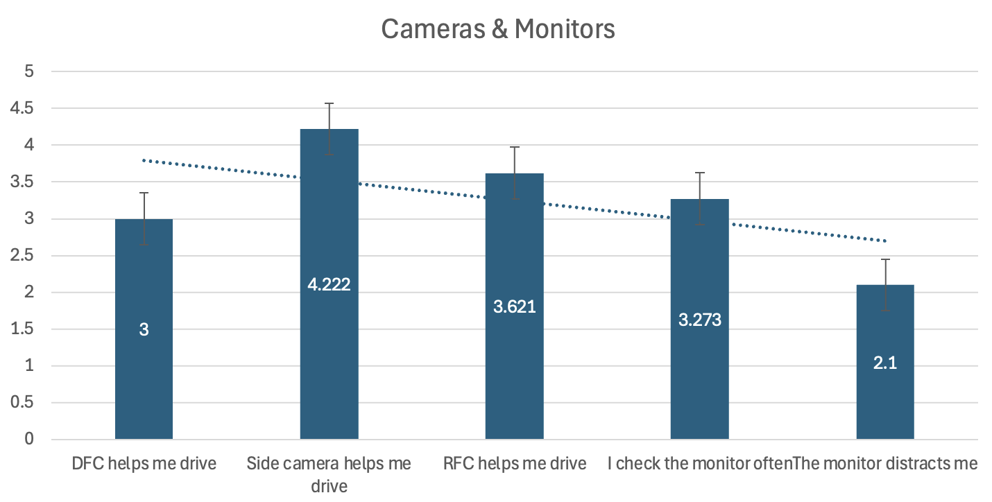 The design should enable the users to monitor road conditions, blind spots, and their surrounding traffic for driver safety.